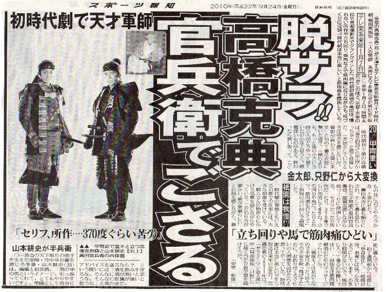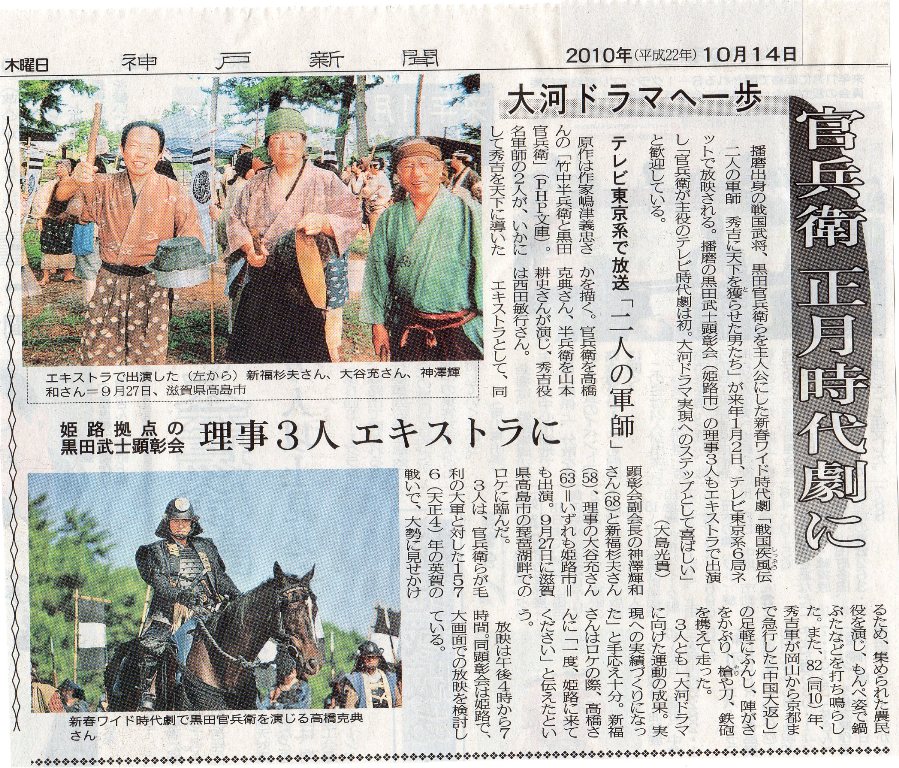 二人の軍師ロケ、大谷 充、神戸新聞に登場、平成23年1月2日にテレビ東京で午後4時から午後11時に放映