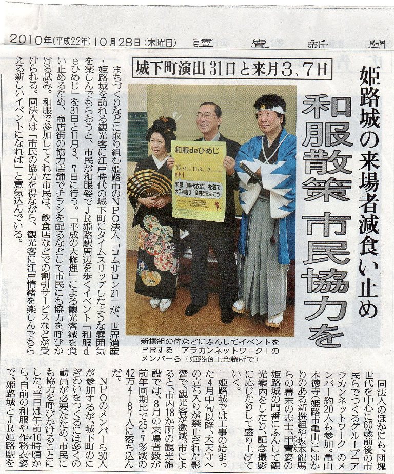 秋の姫路観光キャンペ−ン、大阪駅前地下ディアモ−ルに参加、姫路観光のために汗する。エヘン