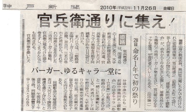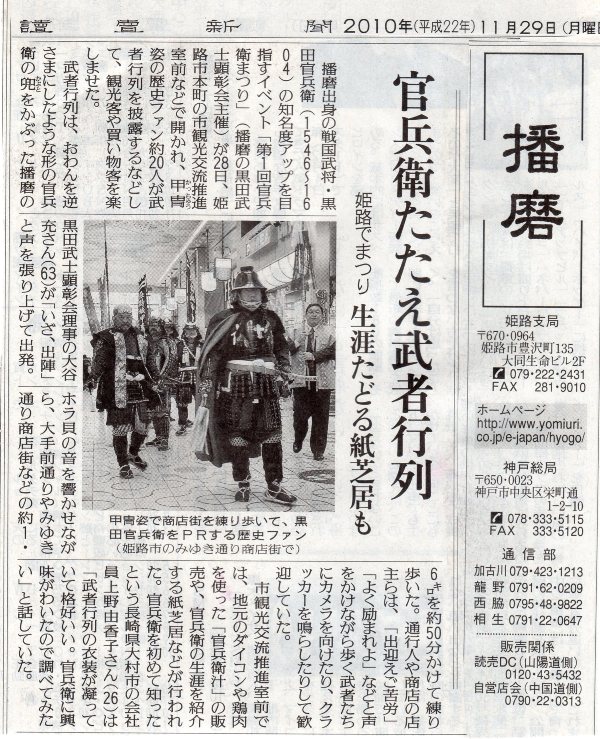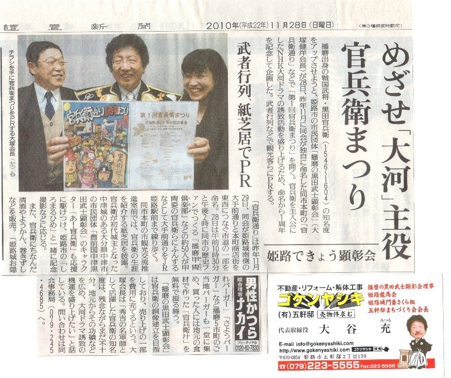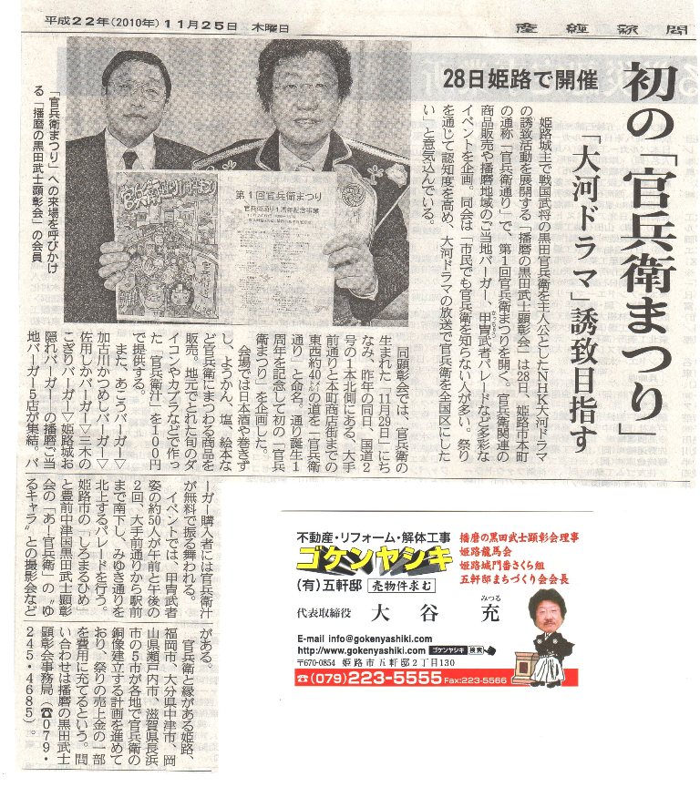 第1回官兵衛まつり開かれる。産経新聞に大谷 充が登場、11月28日乞うご期待