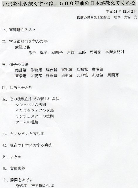 播磨の黒田武士顕彰会理事大谷 充、講師デビュ−