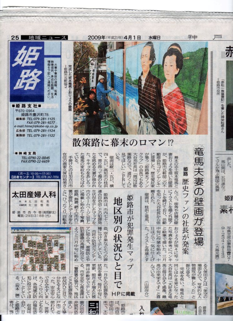 坂本龍馬とおりょうの壁画が完成 神戸新聞に報道される。