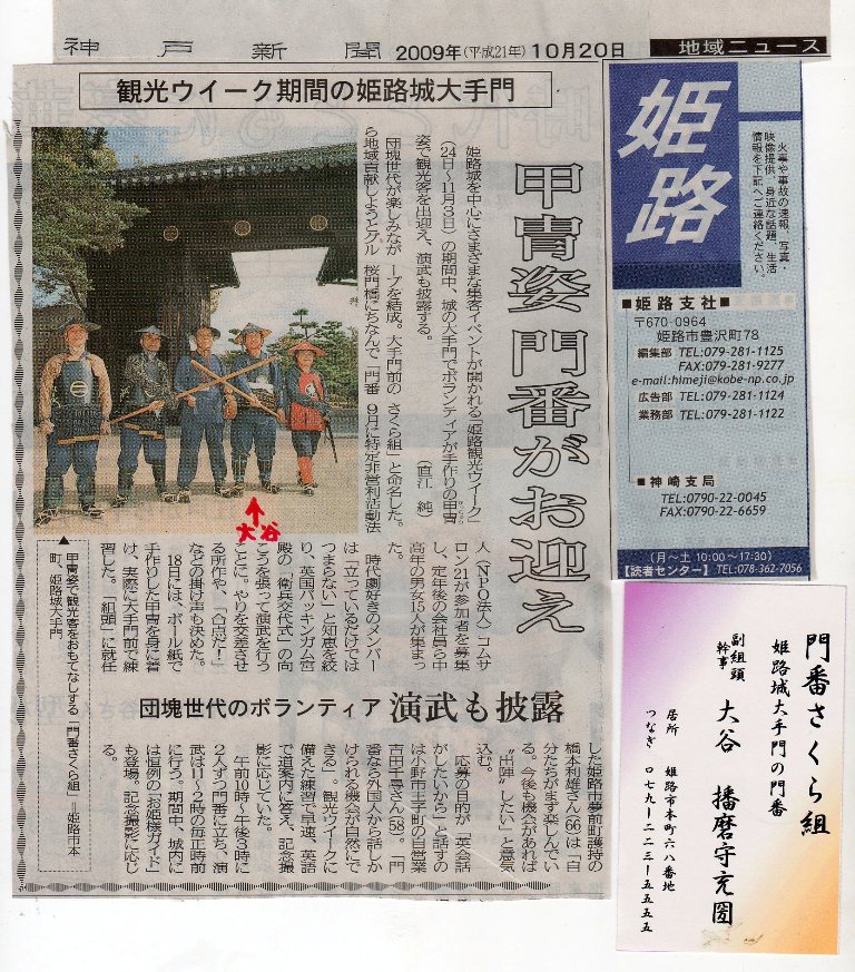 姫路観光ウイ−ク、お城の門番初登場[門番さくら組)、鎧武者イン姫路城に注目!!